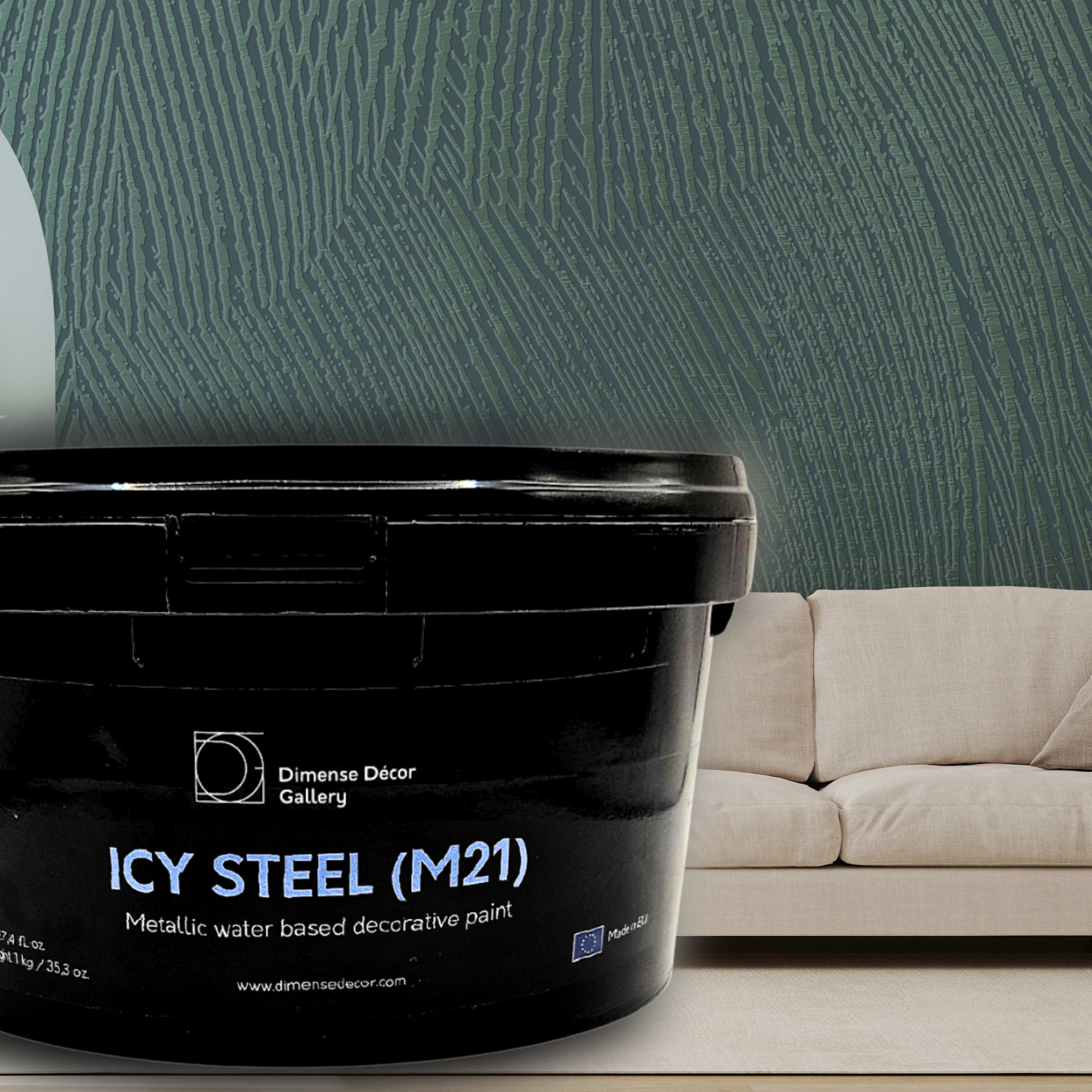 A cool, metallic silver-blue finish inspired by polished steel. It brings a modern, industrial edge to Dimense Décor surfaces, making the structural patterns pop with a sleek, contemporary shimmer.